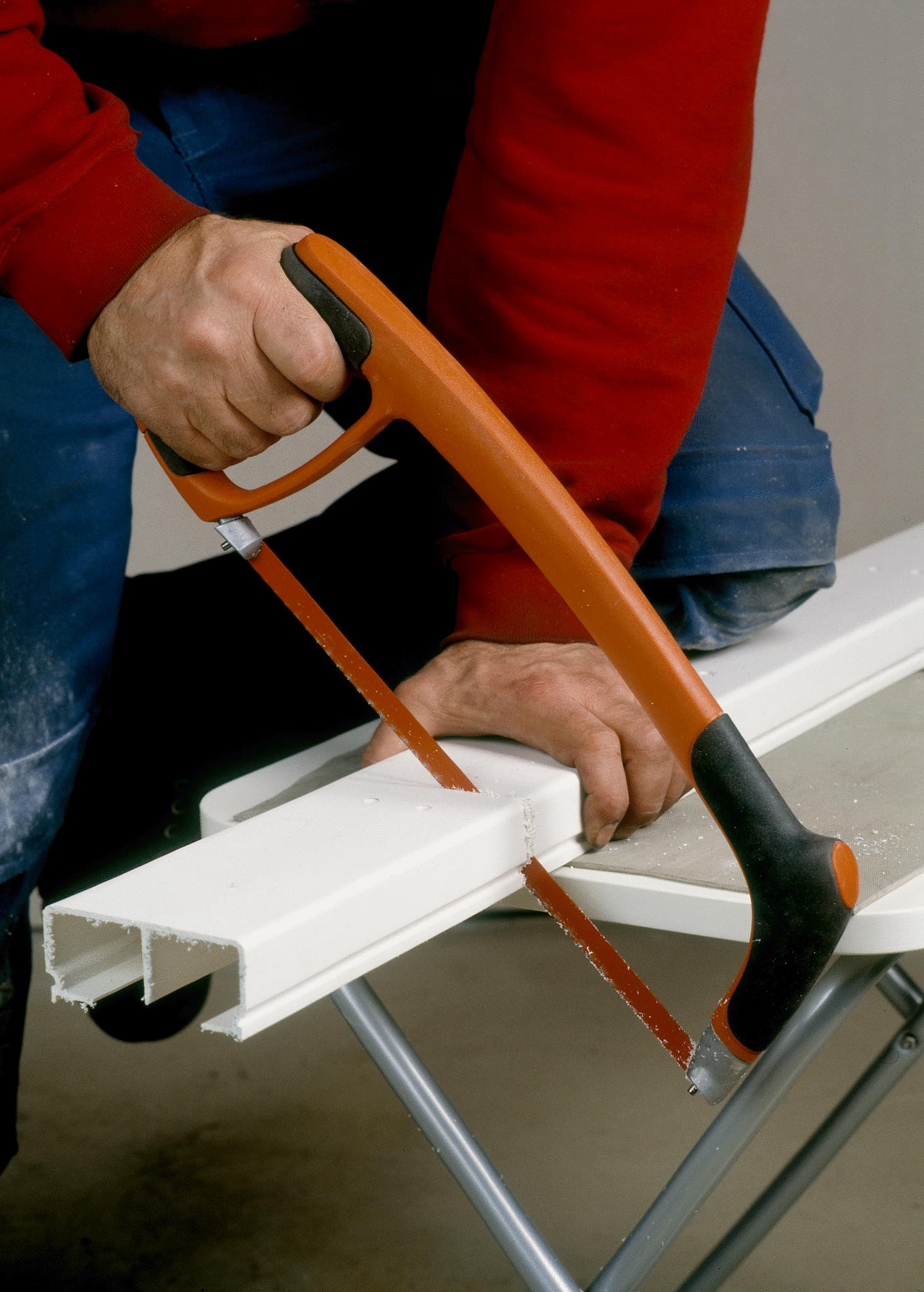 - Stahlrahmen mit Kunststoffummantelung mit sehr hoher Blattspannung für gerade, saubere Schnitte