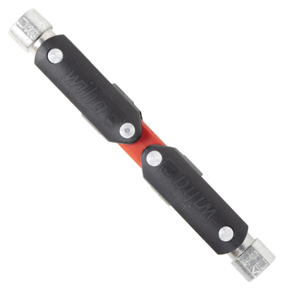 In Schaltschrank- und Schließsystemen kommen unterschiedliche Schlüsselprofile zum Einsatz, welche ein normaler Schraubendreher oder Bit Satz nicht abdecken. Alle nötigen Profile einzeln zusammen zu stellen benötigt viel Zeit. Für eine effiziente Arbeitsweise enthält der Universalschlüssel von Wiha die 8 wichtigsten Schlüsselprofile, welche alle in einem Werkzeug fest miteinander verbunden sind. Durch das Doppelgelenk kann der Schlüssel kompakt für eine platzsparende Aufbewahrung zusammengeklappt werden. In der Anwendung kann er in gerade Stiftform gedreht werden um in beengten Platzverhältnissen einen einfachen Zugang zu ermöglichen. Sitzt ein Profil fest, kann der Schlüssel auch in eine T-Griff Form gedreht werden, um höhere Kräfte aufbringen zu können. Der Wiha Universalschlüssel garantiert langjähriges Arbeiten durch die stabile und robuste Zindruckguss-Konstruktion der Schwenkeinsätze sowie der glasfaserverstärkten Kunststoff-Ärme.