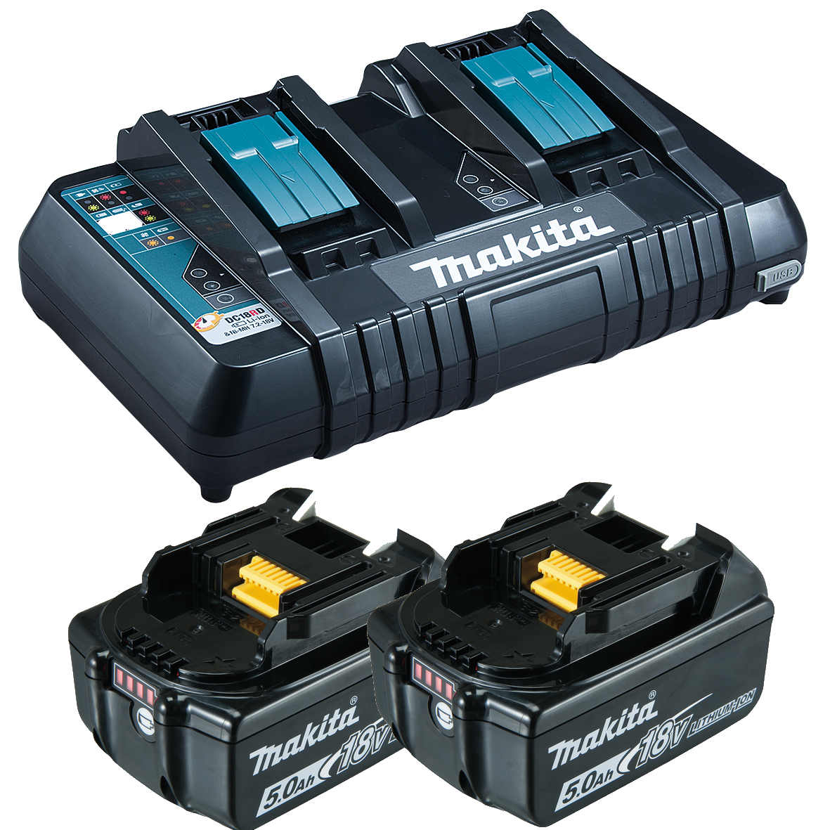 Makita Ladegerät DC18RD - DC 18 RD - mit USB Anschluss - für 2 Akkus