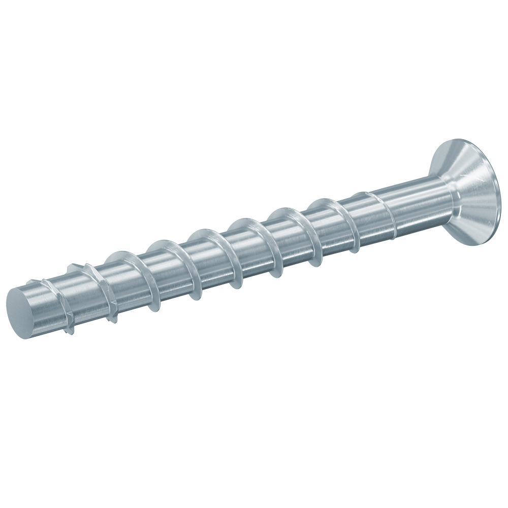 - Die Ausführung der Betonschraube mit Senkkopf ermöglicht eine oberflächenbündige und optisch anspruchsvolle Installation.